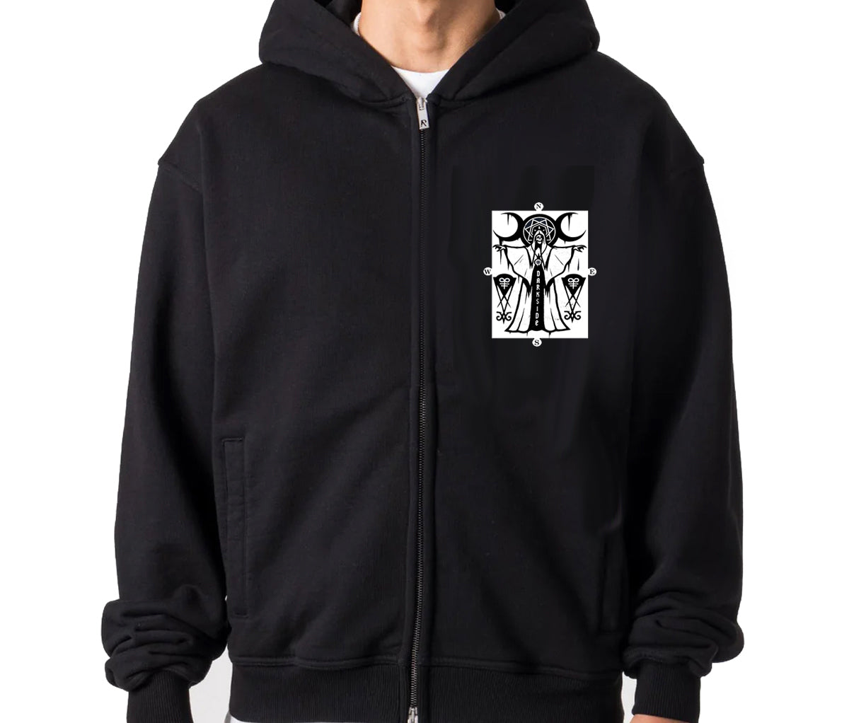 Darkside – CULT PRIEST – Herren-Pullover mit Kapuze und Reißverschluss – Schwarz