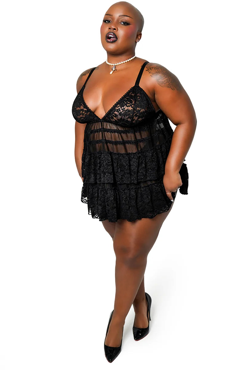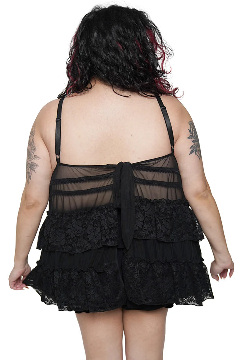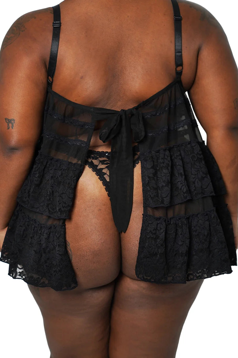 The Lenore Babydoll Top features a open tie back, ruffled flowing layers, and a romantic picot trim for the dreamiest vibe. Pair with our other Lenore styles to build your perfect lingerie set.