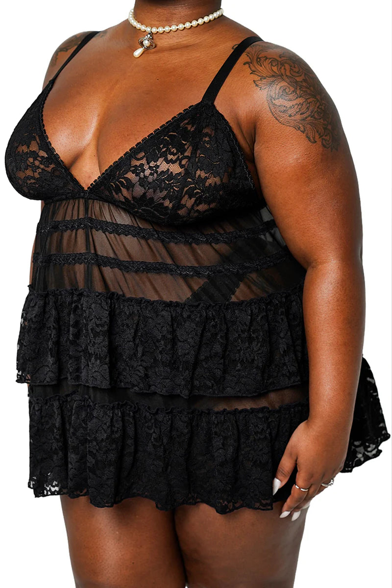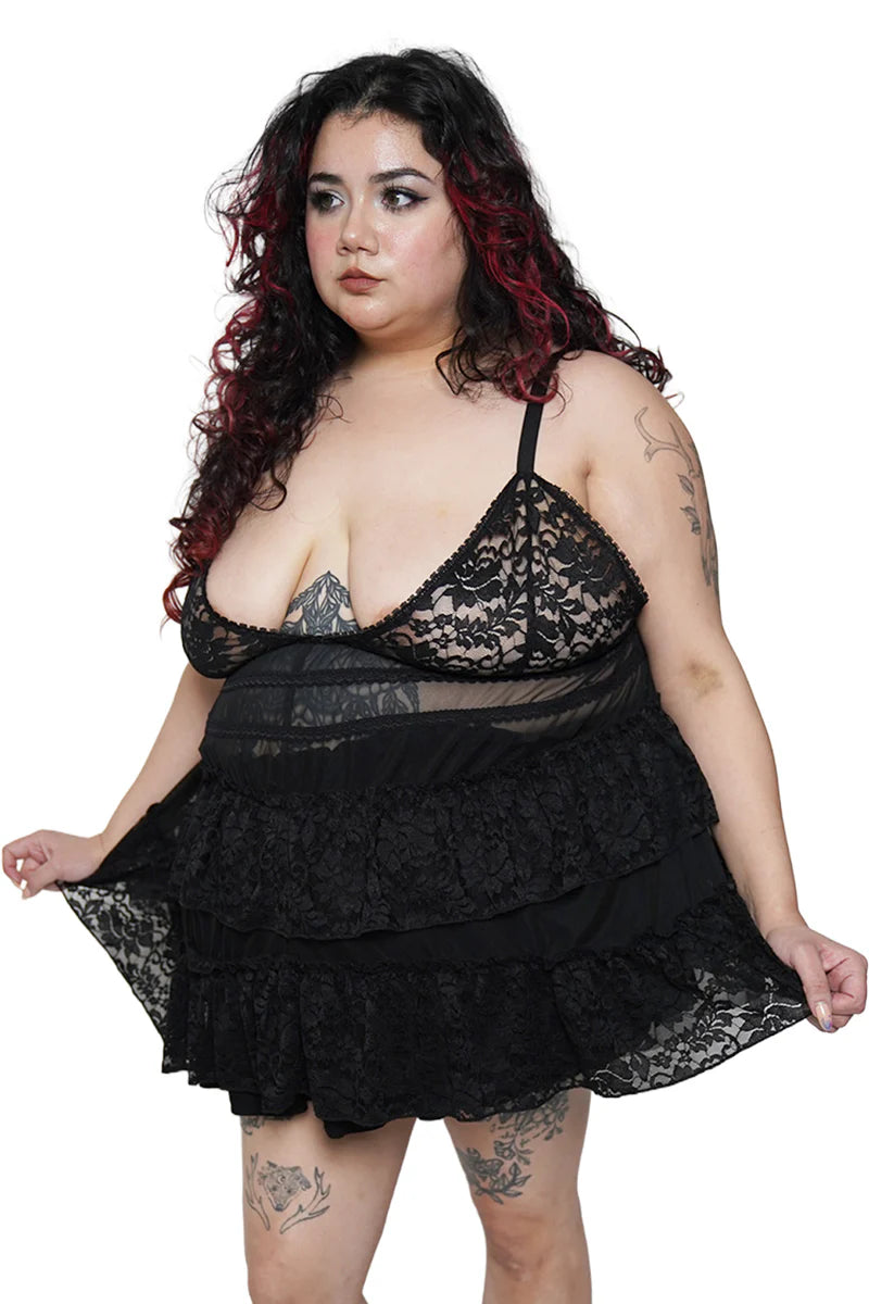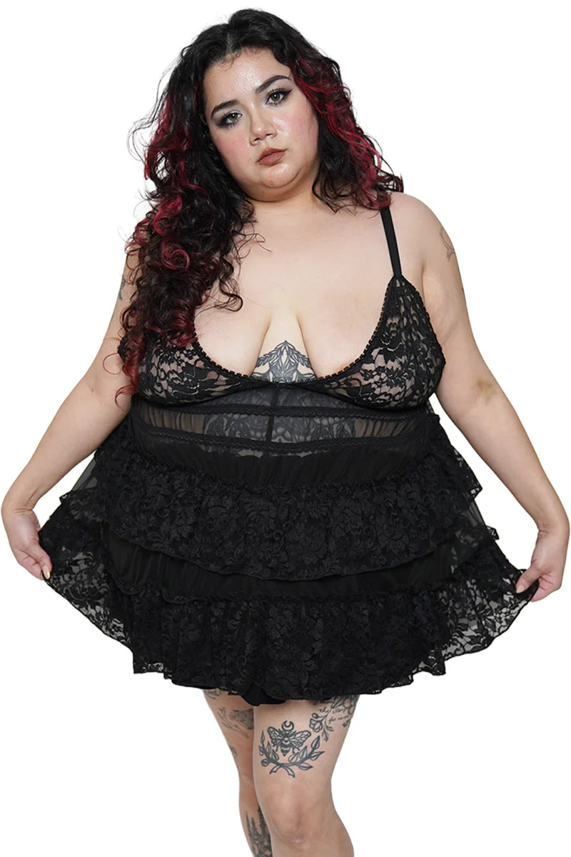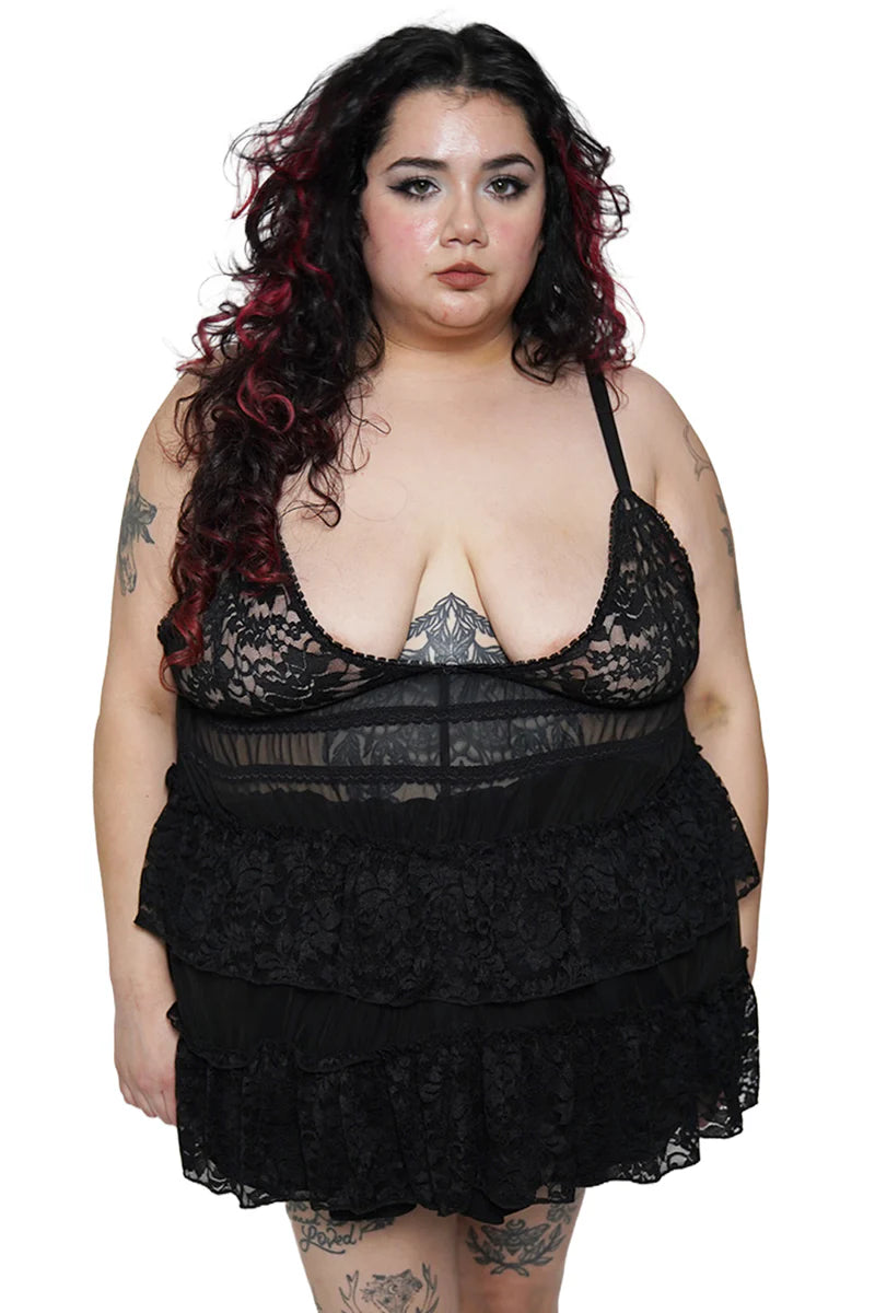 The Lenore Babydoll Top features a open tie back, ruffled flowing layers, and a romantic picot trim for the dreamiest vibe. Pair with our other Lenore styles to build your perfect lingerie set.