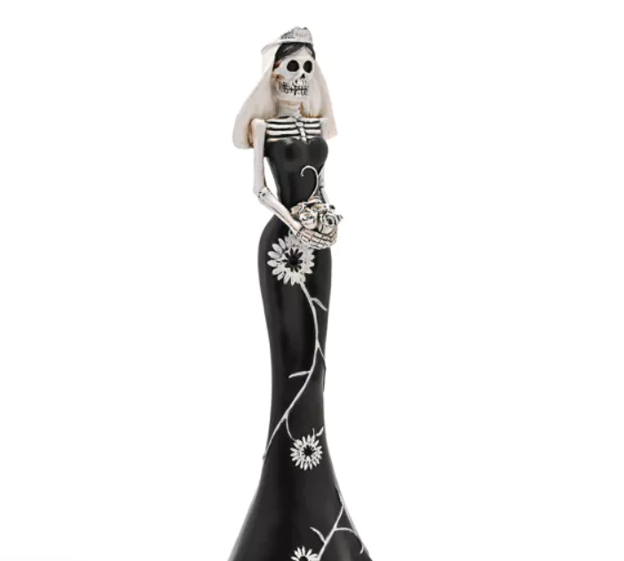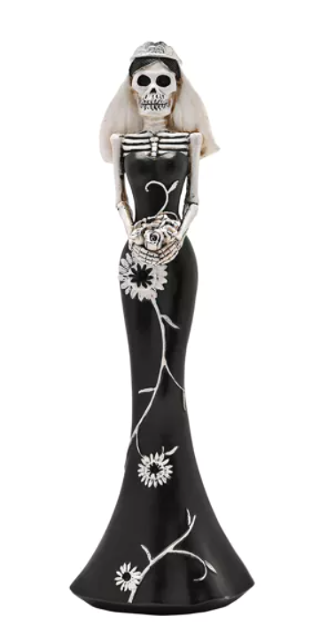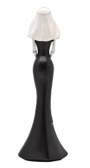 Embrace the spectral allure of the Halloween season with the Skeleton Bride Figurine by HOCUS POCUS NOVELTIES. Tall and slender, this haunting masterpiece is a captivating addition to any Halloween décor. The primarily black and white colour scheme enhances the figurine's ghostly presence, while intricate detailing brings the skeletal bride to life. This figurine is more than just a seasonal ornament, it is a testament to the artistry of the spooky season.
