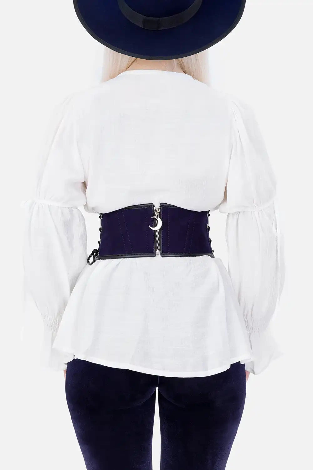 ✦ Under-bust corset belt in dark "midnight blue" faux suede