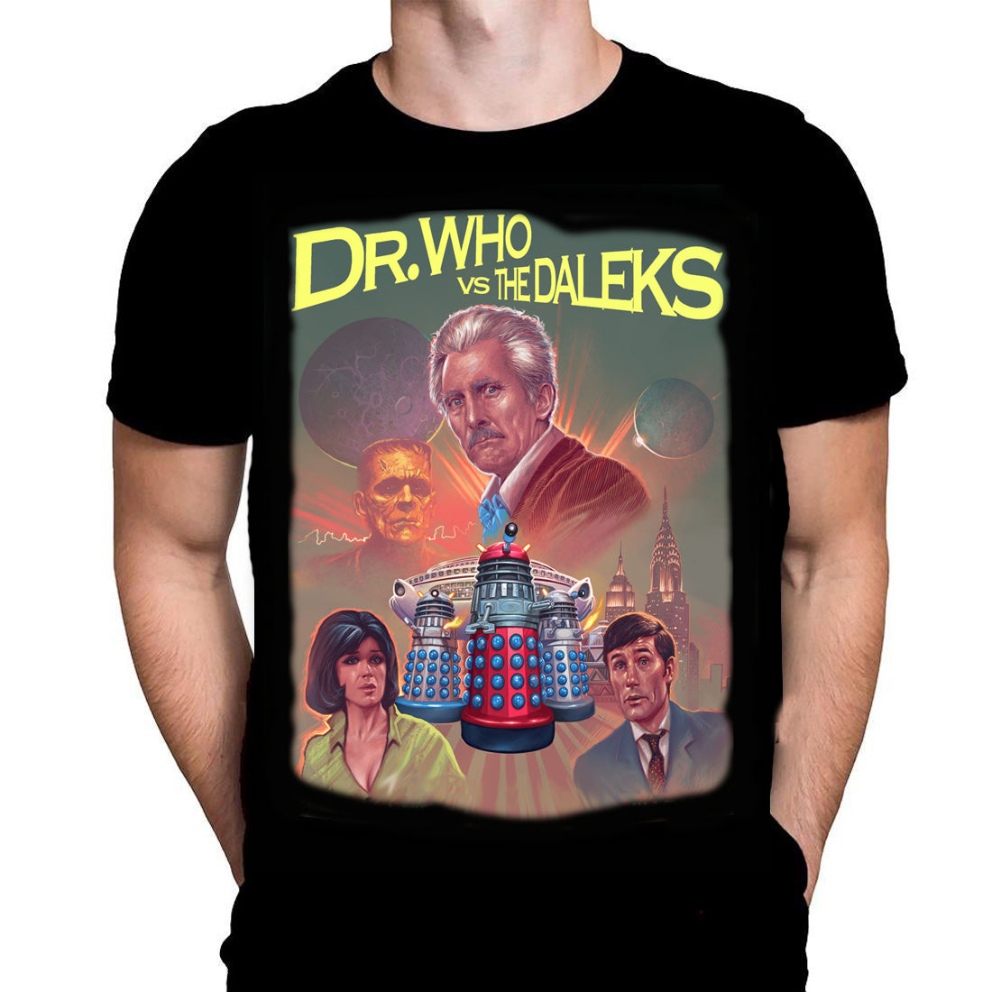 Dr Who vs Daleks - Black Gildan T-Shirt Peter Cushing Doctor Who