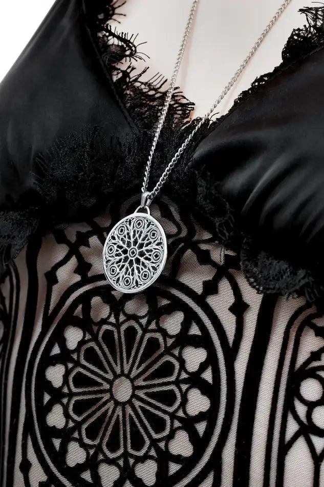 ⋆ Long necklace featuring a stunning Rose Window-inspired pendant