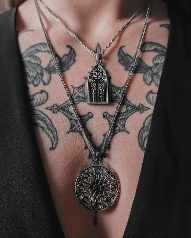 This cathedral necklace feels like holding a piece of 13th-century architecture close to your heart. Inspired by Notre Dame’s breathtaking rose windows, we poured passion into every detail, crafting a stunning openwork pendant with intricate rosette tracery.