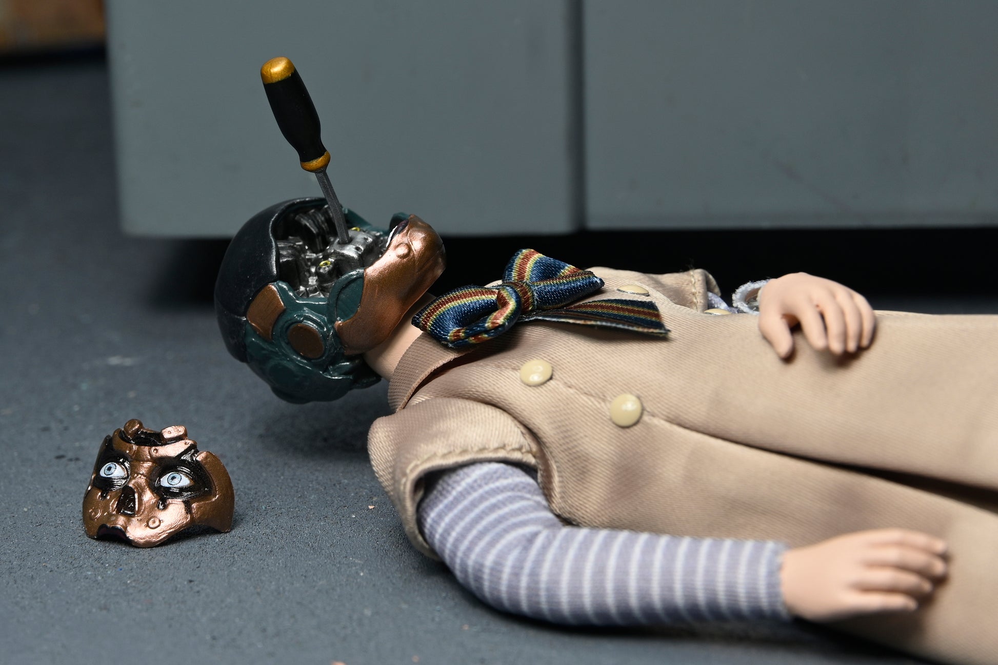 Own your very own M3GAN doll from the hit film! The Model 3 Generative Android (M3GAN) was designed to be a parent’s greatest ally and programmed to be a child’s best friend...but a self-aware doll with a life of its own can lead to sinister consequences. This fully articulated, 8-inch scale NECA action figure has tailored clothing similar to the retro toy lines that helped define the licensed action figure market in the 1970s. Accessories include interchangeable faceplates and hands, battle-damaged head, robot head with battle-damaged faceplate, paper cutter, and screwdriver. She stands 5 inches tall and will be an excellent addition to any family!