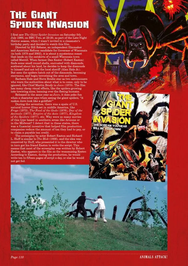Creeping, crawling, swimming, scuttering, slithering and flying, they’re all out to get you! From the giant bugs of the nuclear age, to the hordes of insects and spiders, to an almost certain death waiting beneath the surface of deceptively tranquil waters, cinema has long celebrated the nature bites back films. From 50s classics like Them! and Tarantula, to blockbusters like Jaws and The Birds and from cheesy B movies to state of the art CGI join us as we explore the cinematic horrors of nature, red and bloody in tooth and claw!
