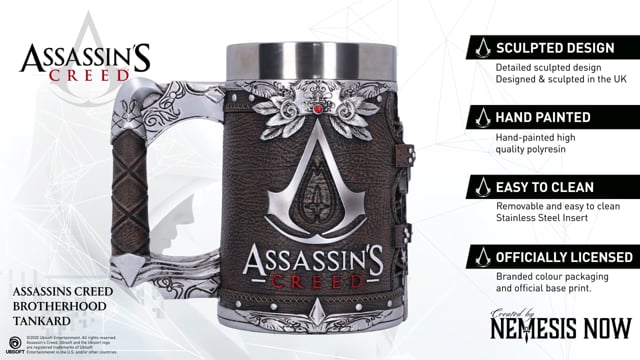 Ruminate the guiding principle of the Assassin Order and celebrate one of the best-selling video game franchises of all time with Nemesis Now's Creed tankard by Nemesis Now.