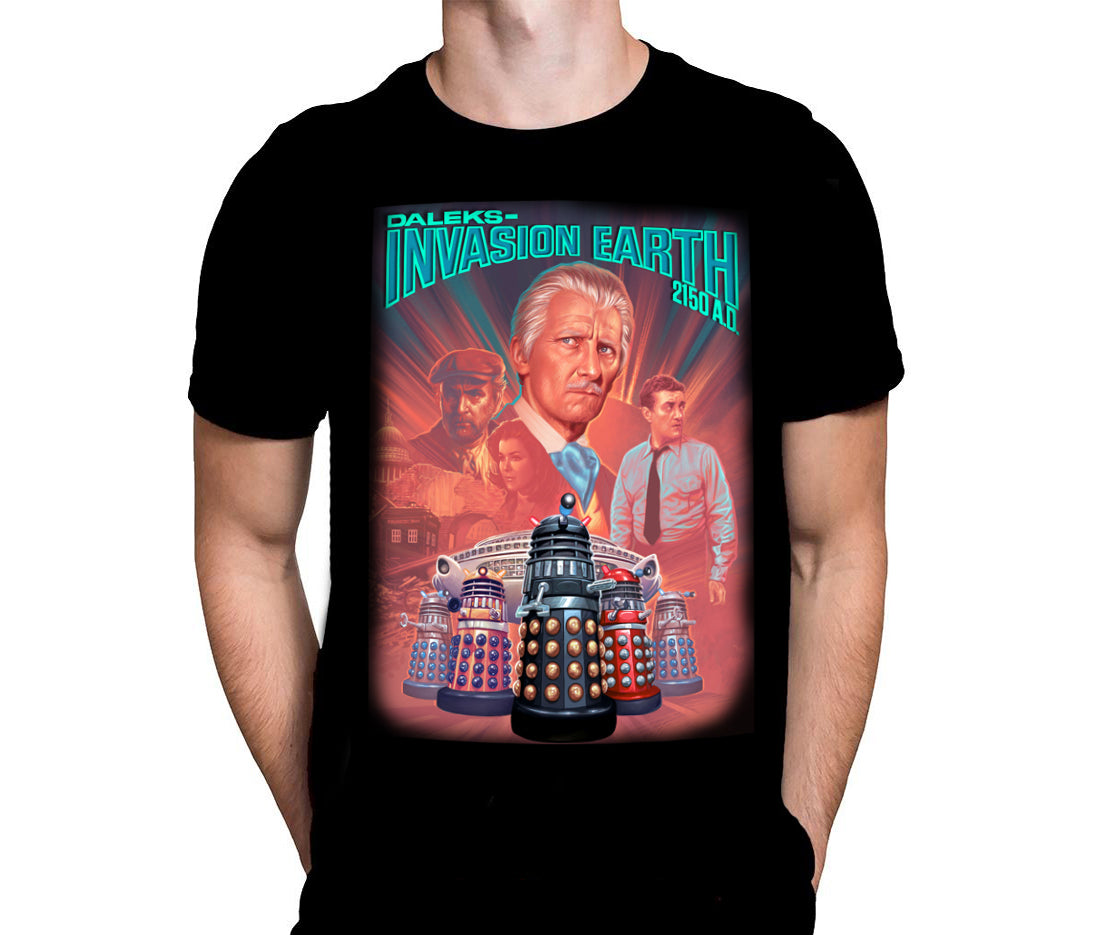 Darleks Earth Invasion - Black Gildan T-Shirt Peter Cushing Doctor Who