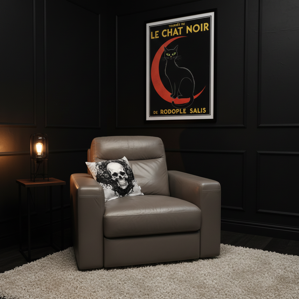 Add a bit of academic sophistication to your gothic living space with our new collection of Gothic sophistication, inspired by Le Chat Noir and 30's Film Noir.