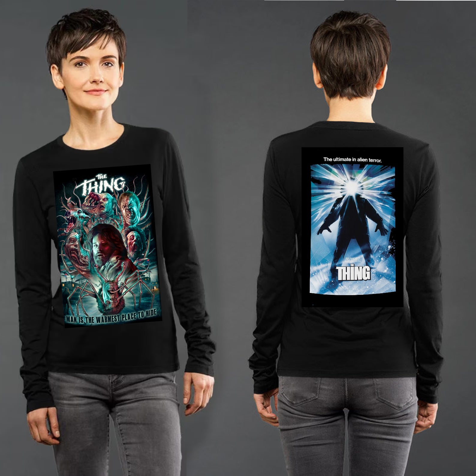 Horror Longsleeve T-Shirt from your favourite Horror Movie - Printed Images Front and Back