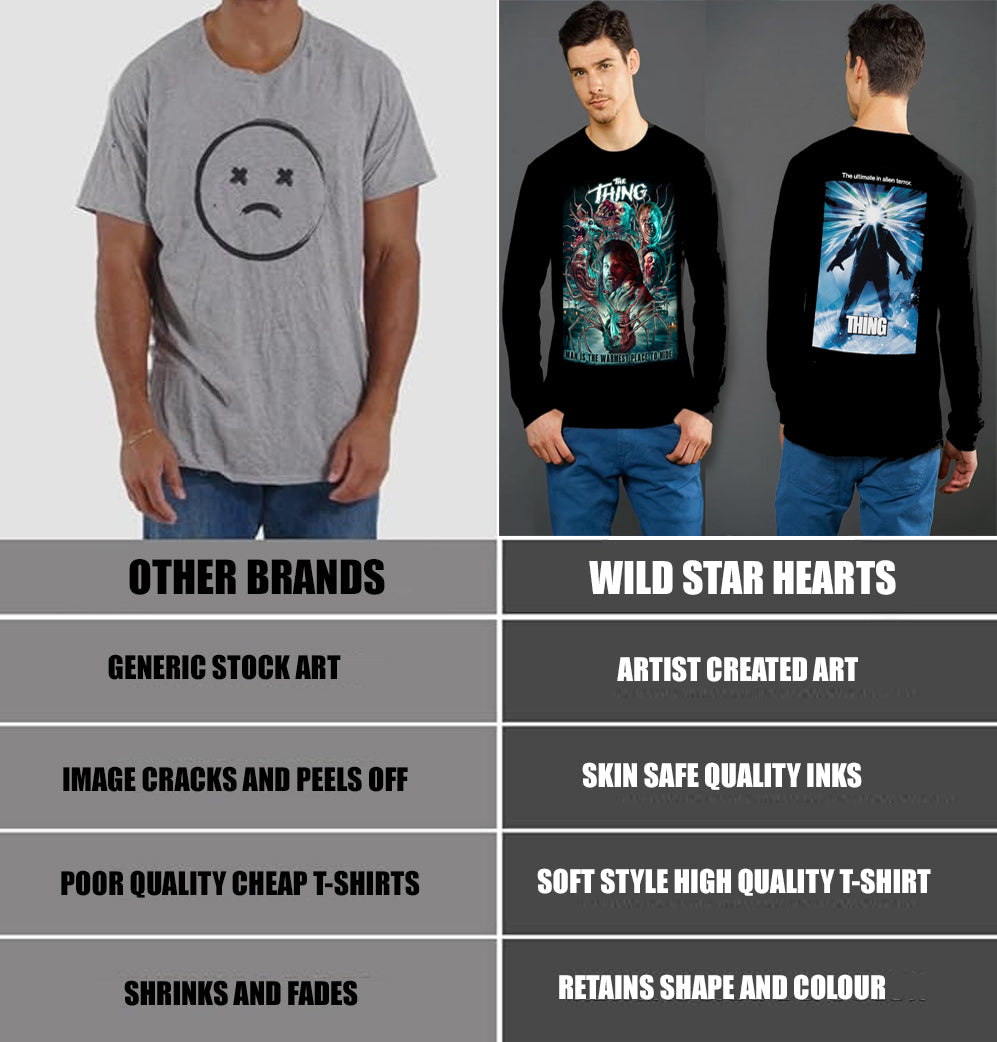 Wild Star Hearts presents you with the highest quality horror Longsleeve T-Shirt you will ever own. Wear your favourite horror movie with pride with a T-Shirt that will last wash after wash after wash