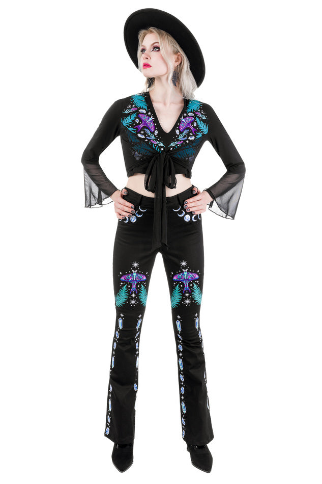 ⋆ Detailed embroidery, featuring magical moths, fern leaves, lavender flowers, crystals, and stars - all in bright, eye-catching colors