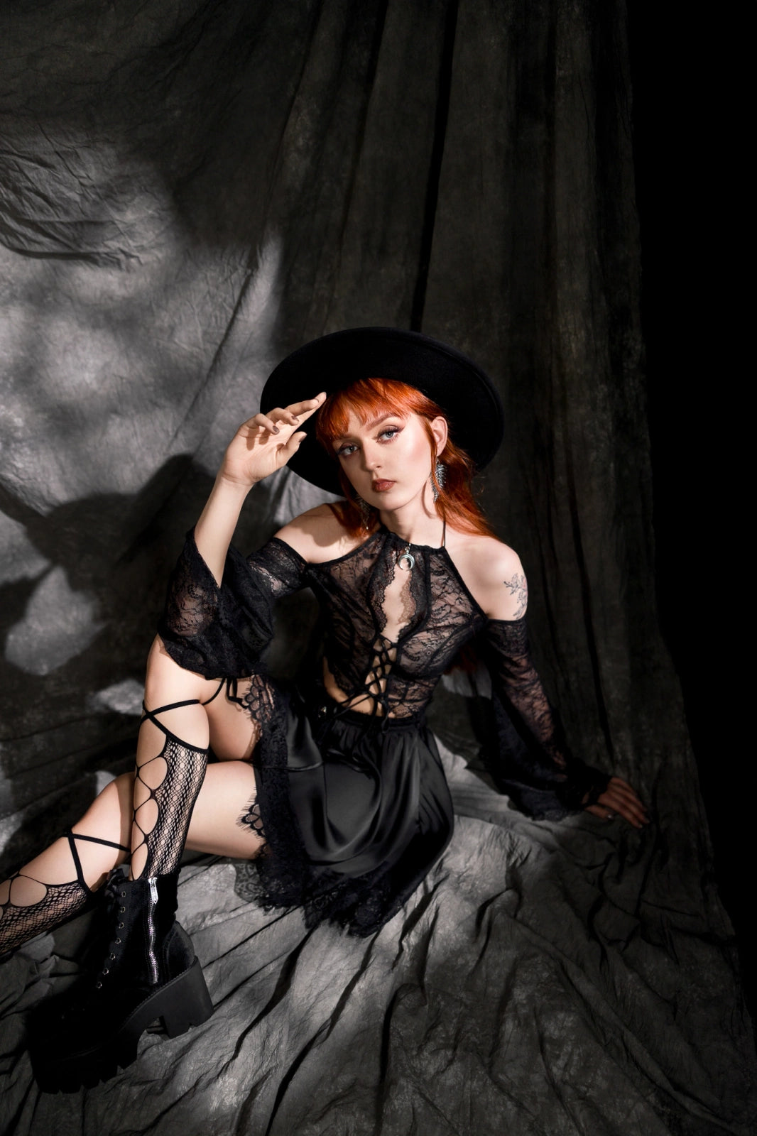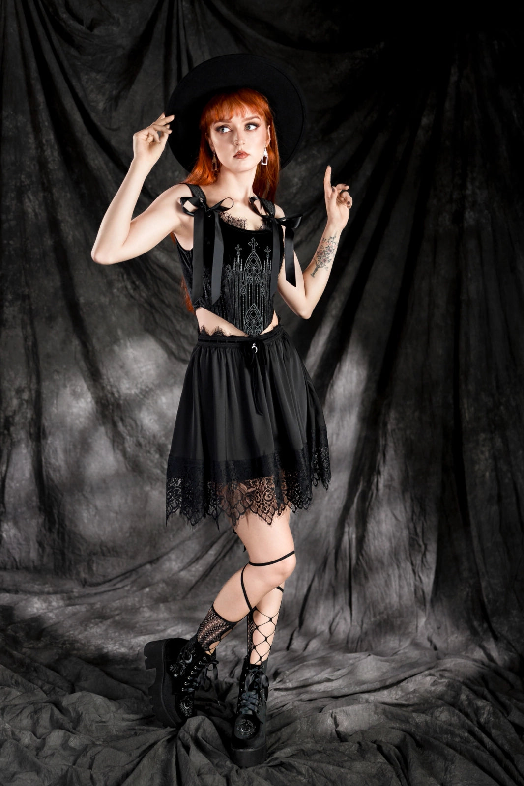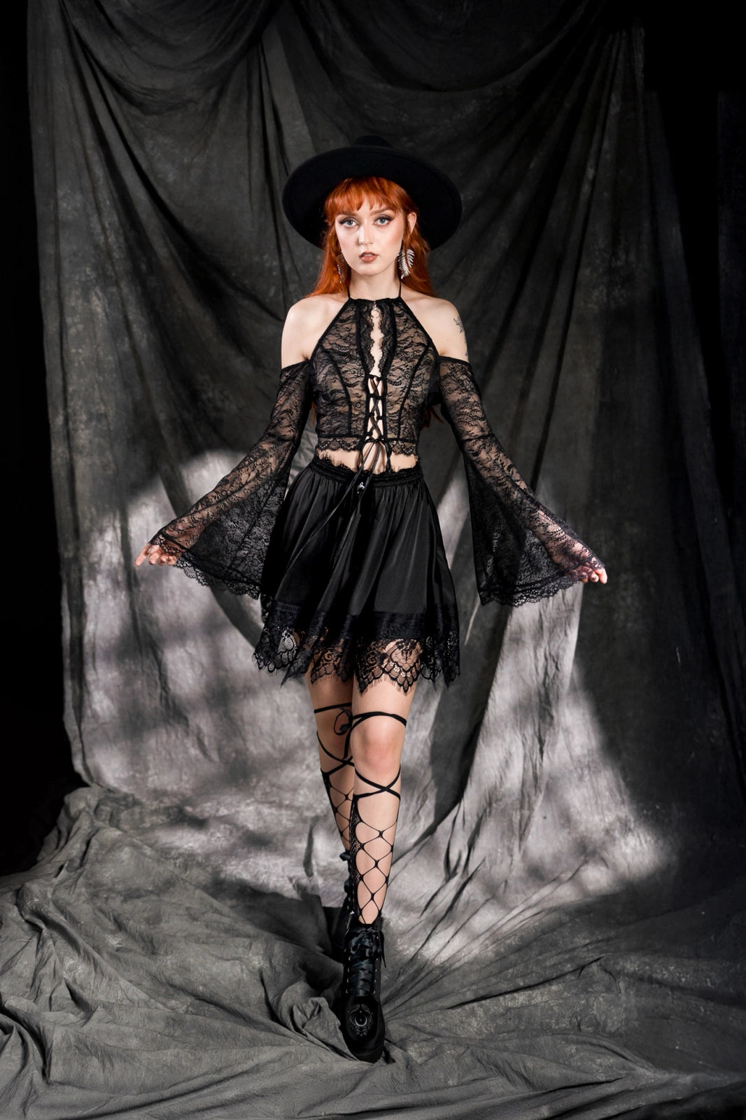 The LOST IN MAGIC MINI SKIRT exudes delicate femininity and mysterious elegance. Crafted from satin with intricate lace and velvet, it moves with you like a whisper in the dark. Elegant, playful, and full of intrigue!