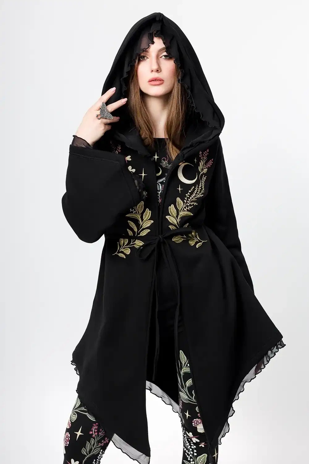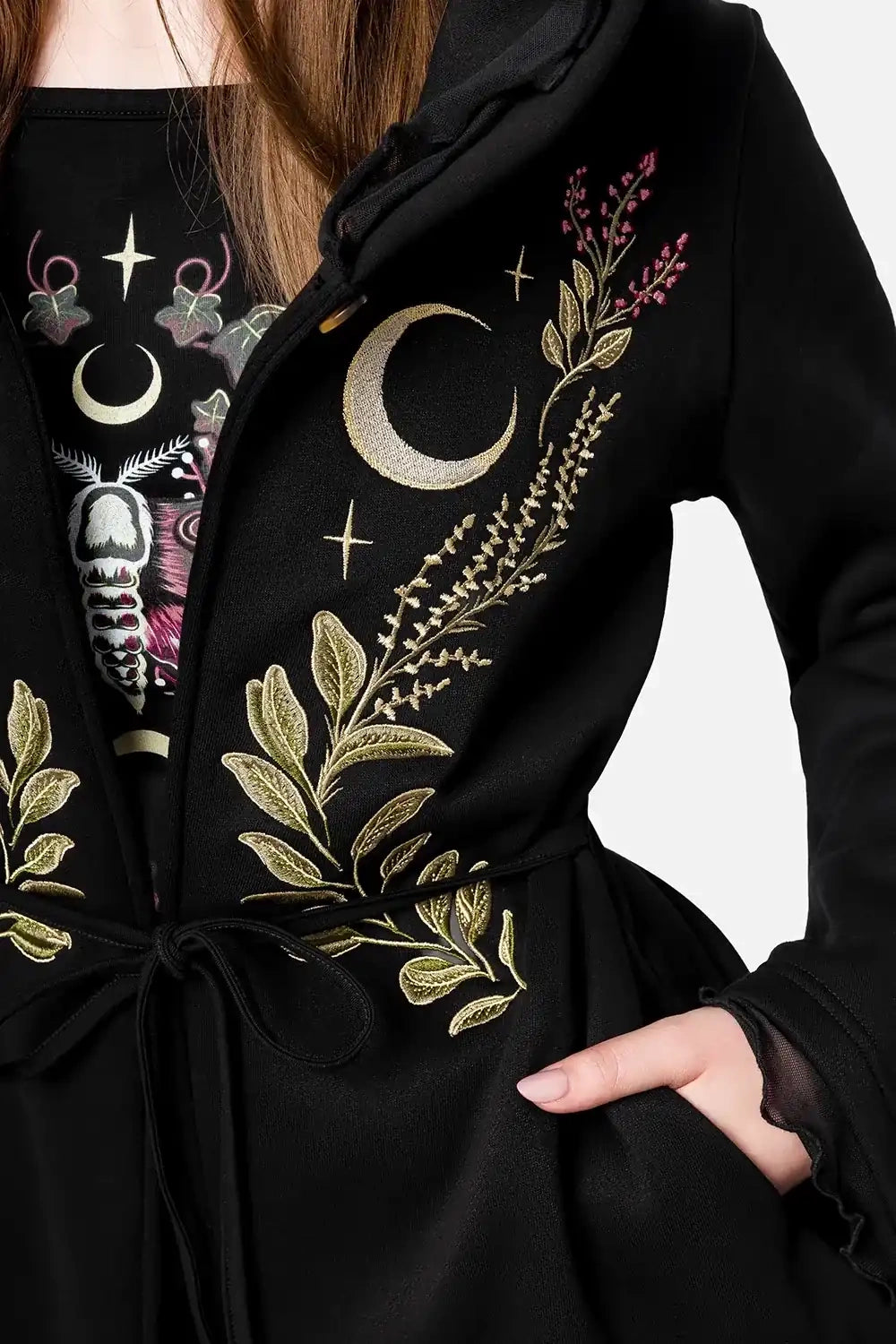 Restyle - Moon Phases - Dark Cottagecore Embroidered Hoodie