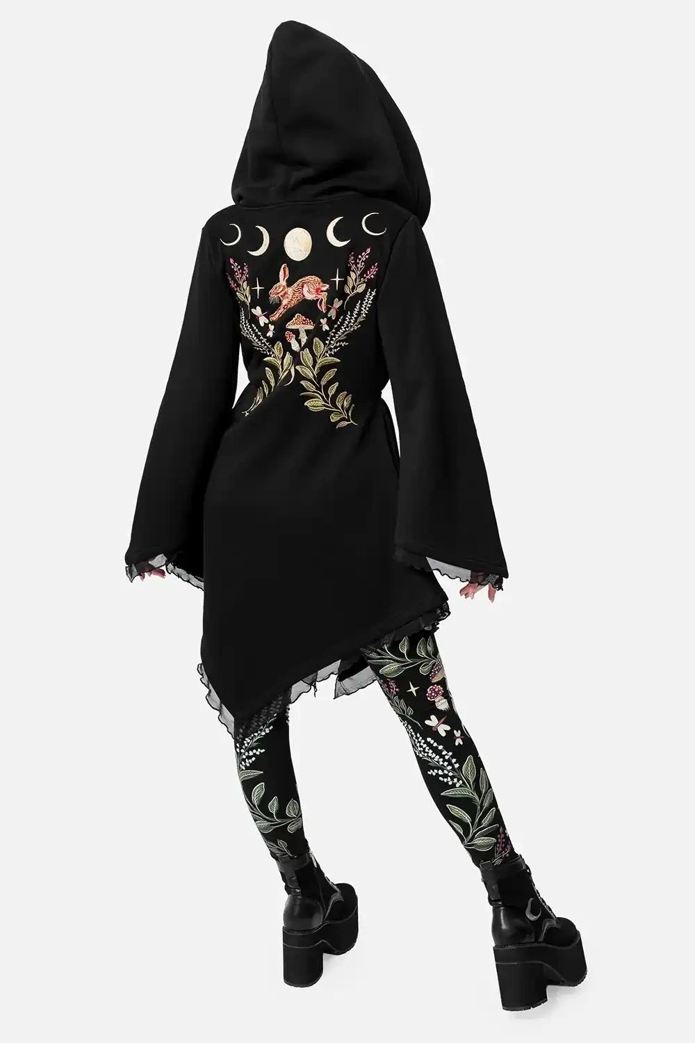 A witchy embroidered hoodie with hare and moon phases, designed for lovers of dark boho, forestcore, and fairy-inspired fashion. This mystical hoodie captures the essence of the enchanted forest - soft, flowing, and full of hidden magic.