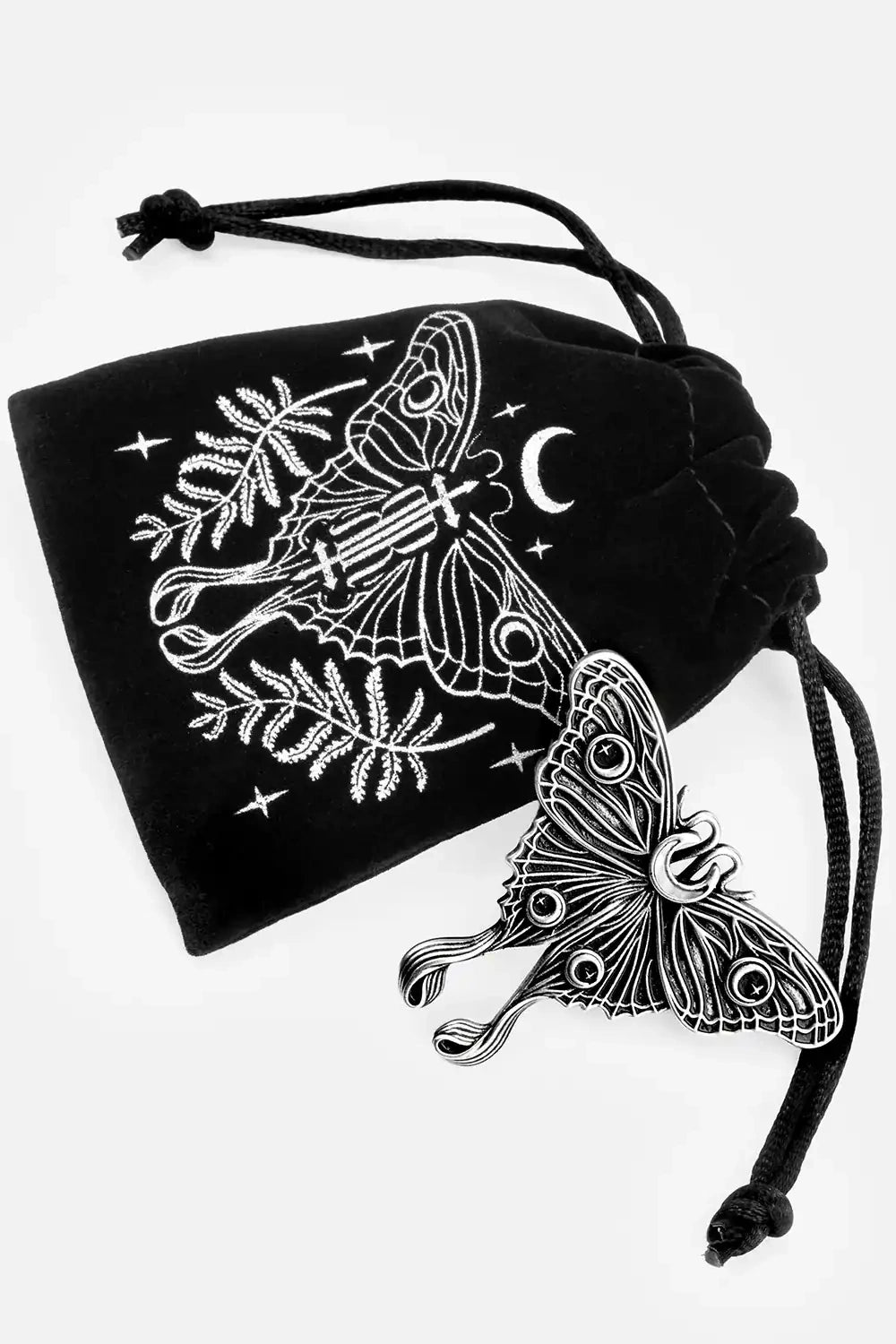 ✦ Large, custom moth design with crescent moon detail