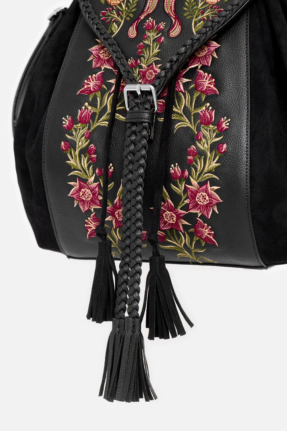 ✦ Flowing tassels on the drawstring and front flap