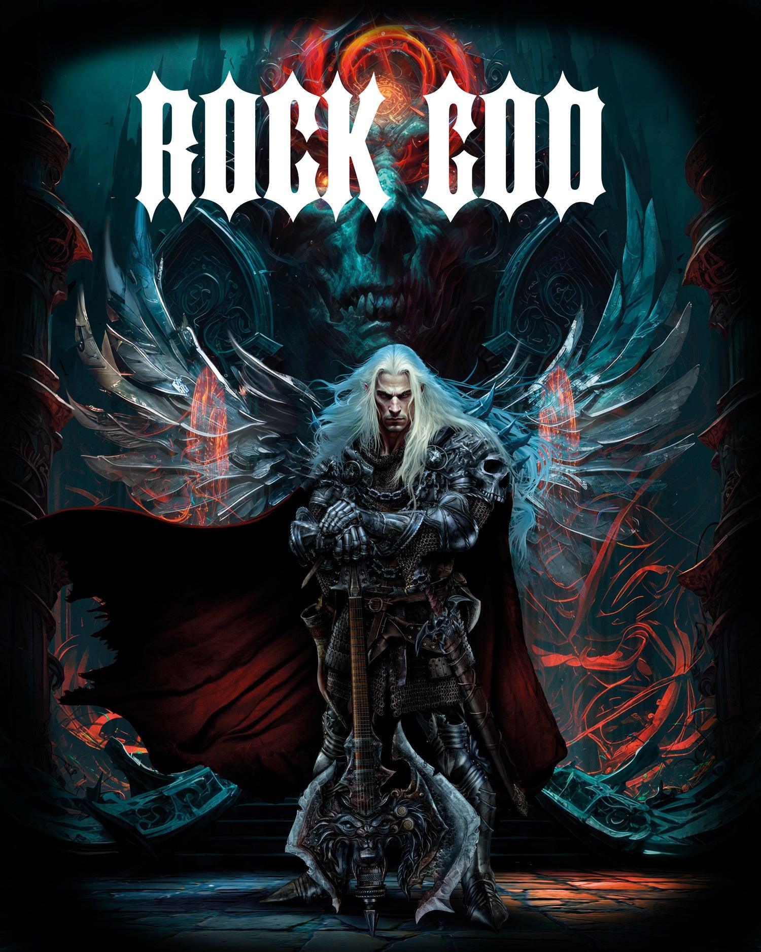 Rock God Skull Guitar - Fantasy Heavy Rock Poster Art - T-Shirt
